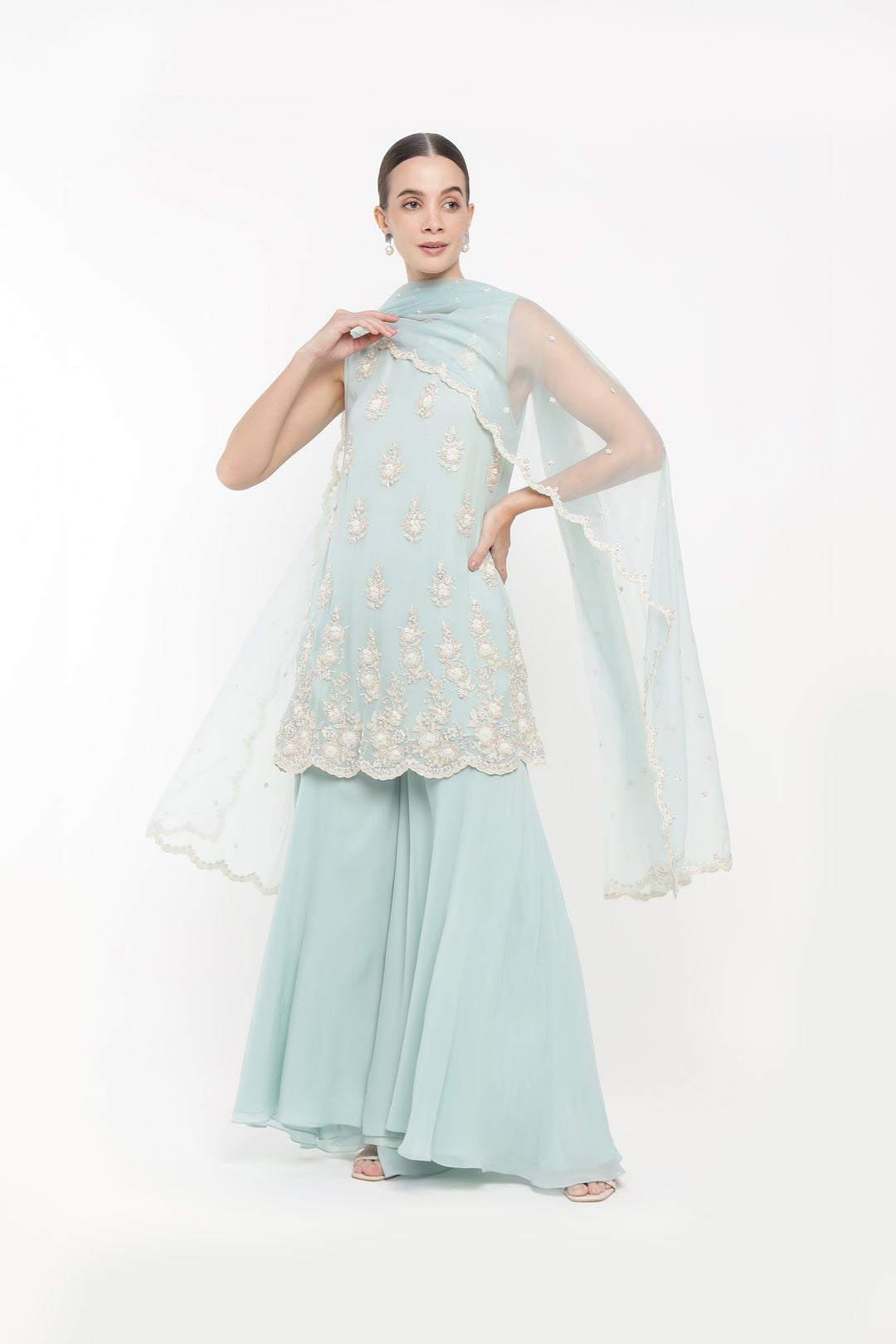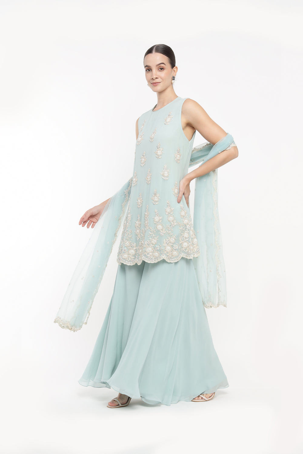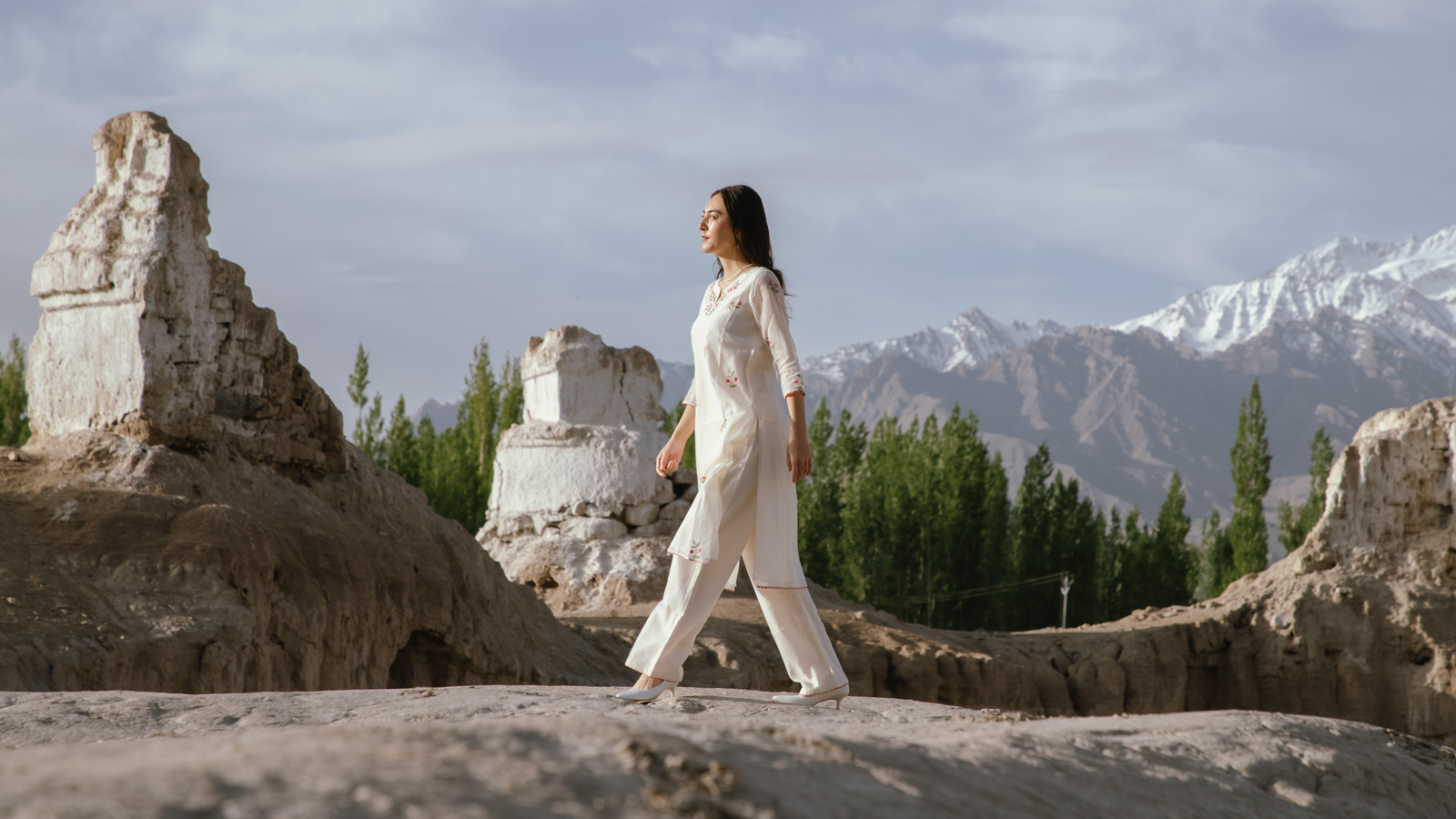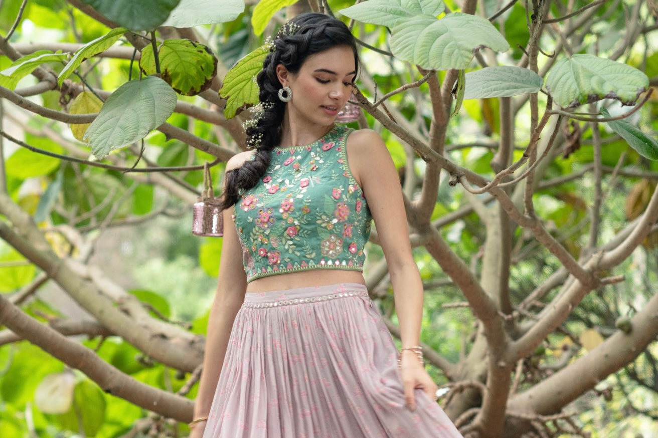 Three women in sarees posing against different colored backgrounds Three women in traditional outfits celebrating with bowls of snacks in a decorated room.