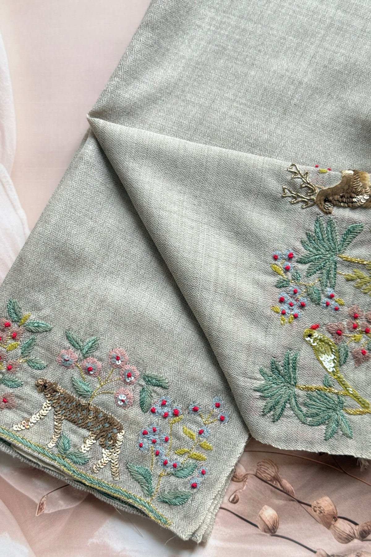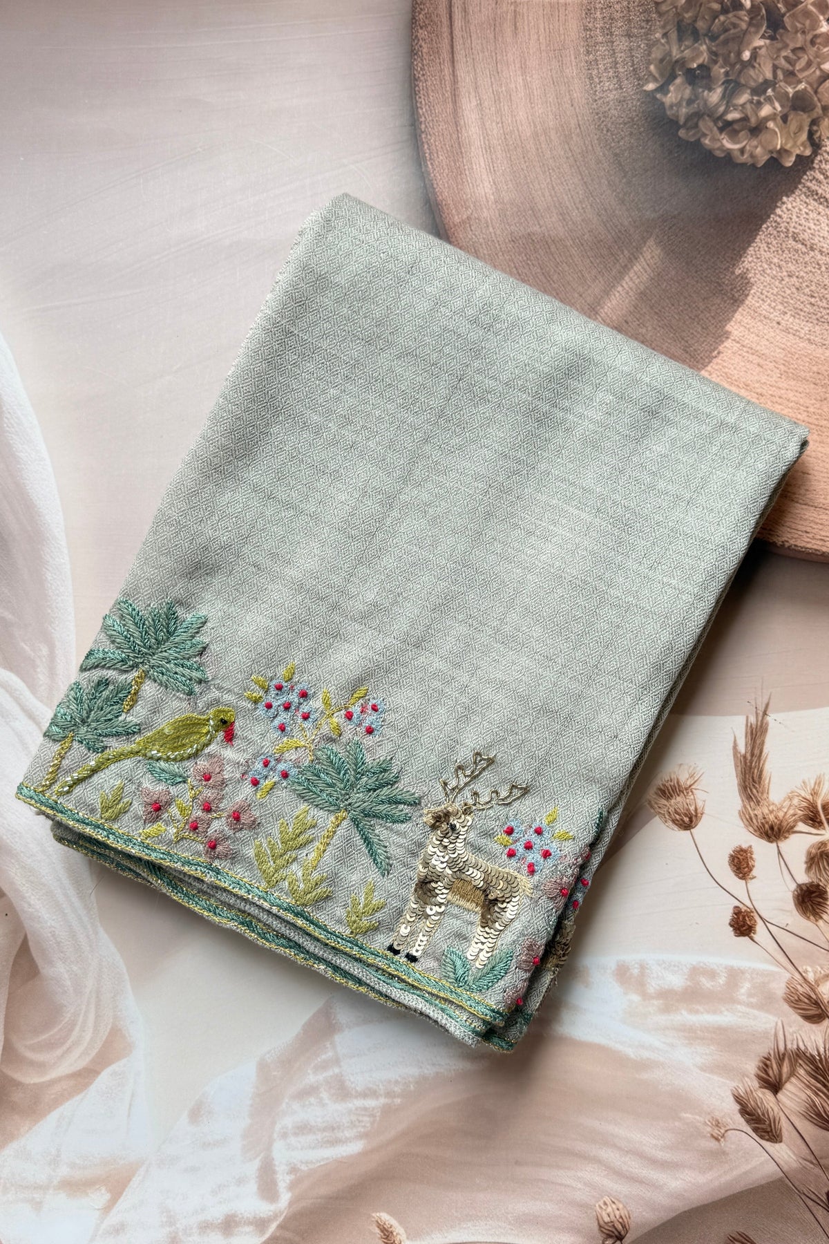 A wool stole featuring animal motifs like birds, deer, and leopards would be a bold and unique statement piece. These motifs could be created using embroidery or even printed patterns, giving the stole a dynamic and artistic look.