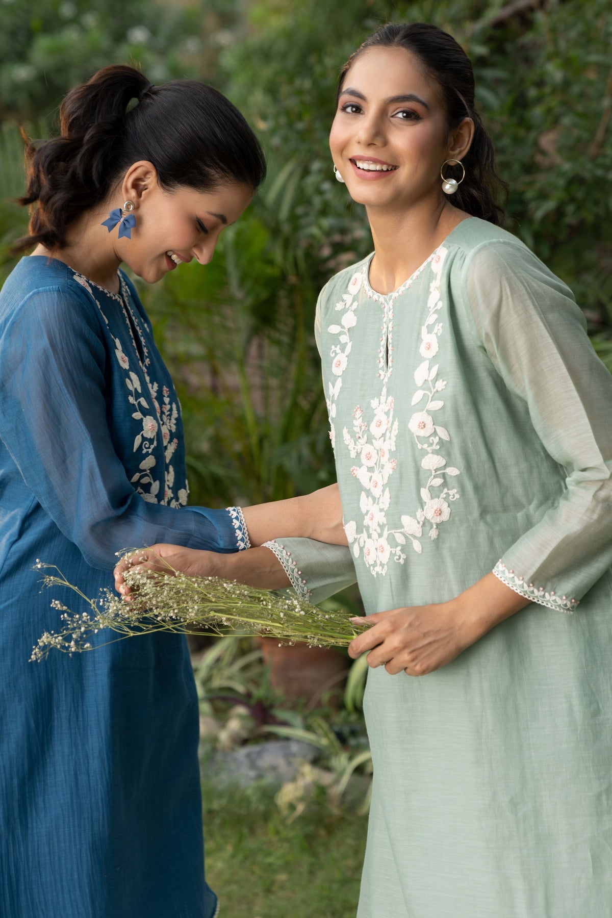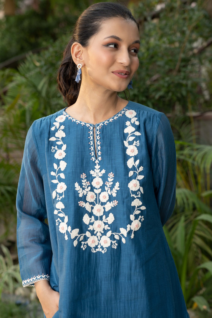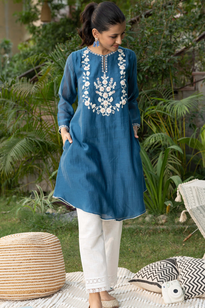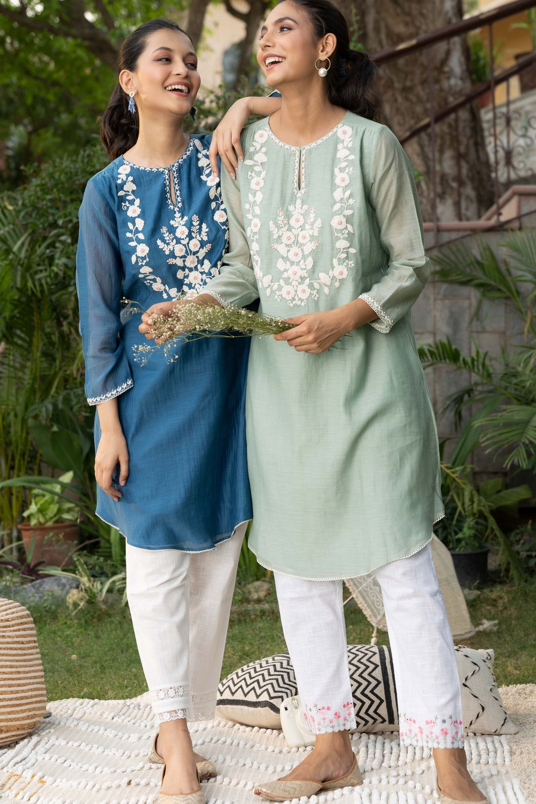 Indian Chic - Elegant Mul Embroidered Short Kurta for everyday elegance.