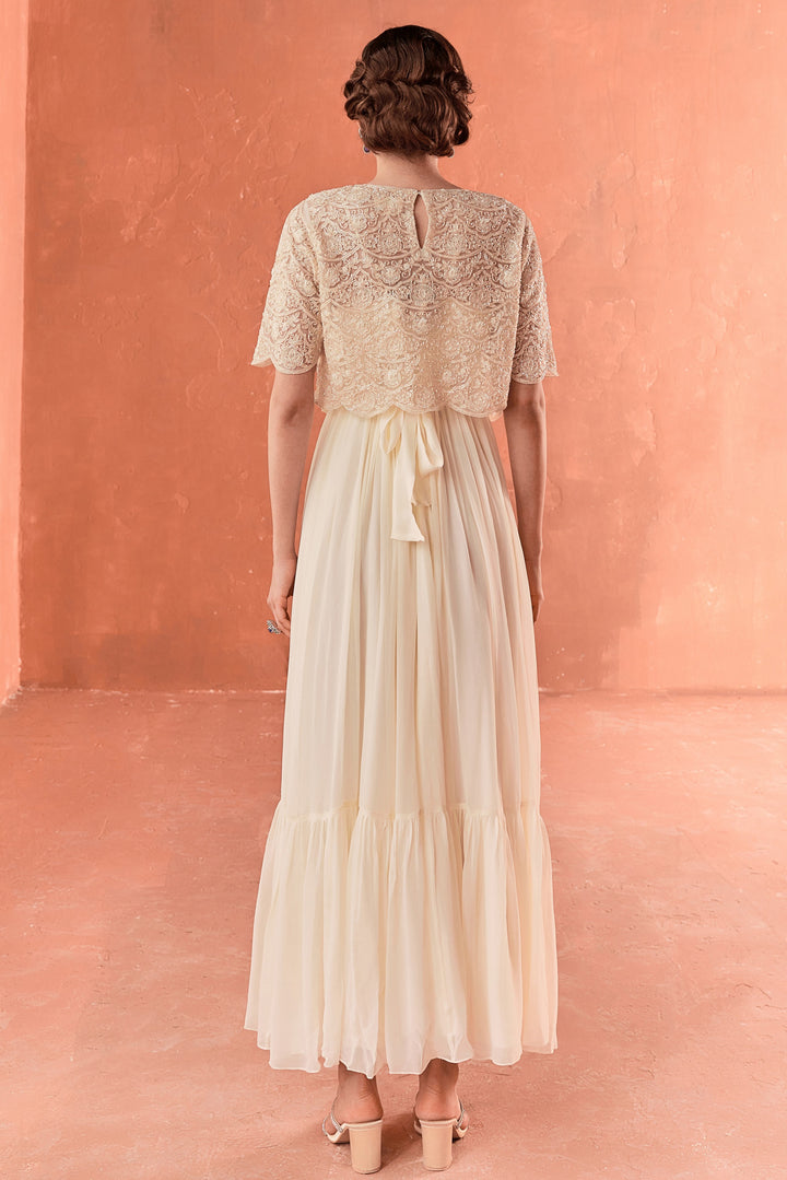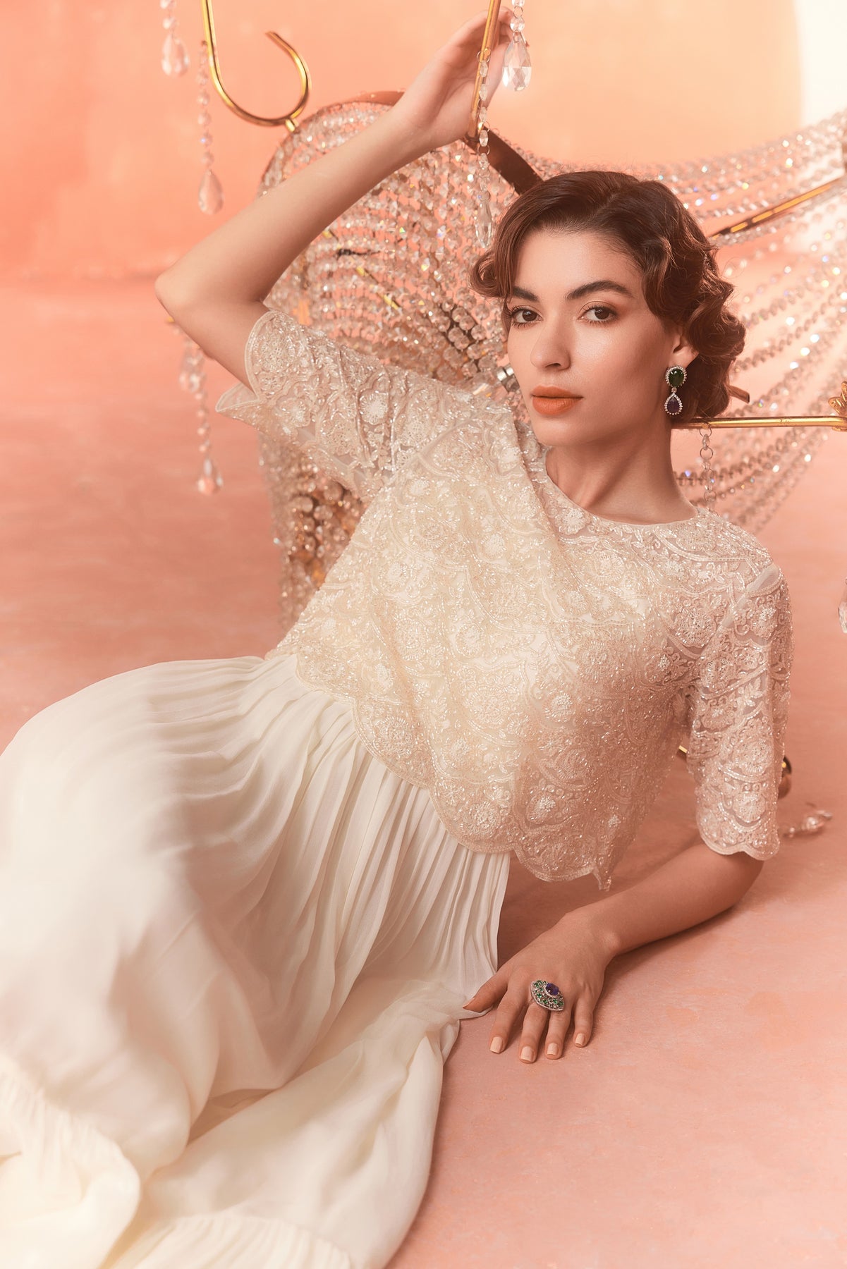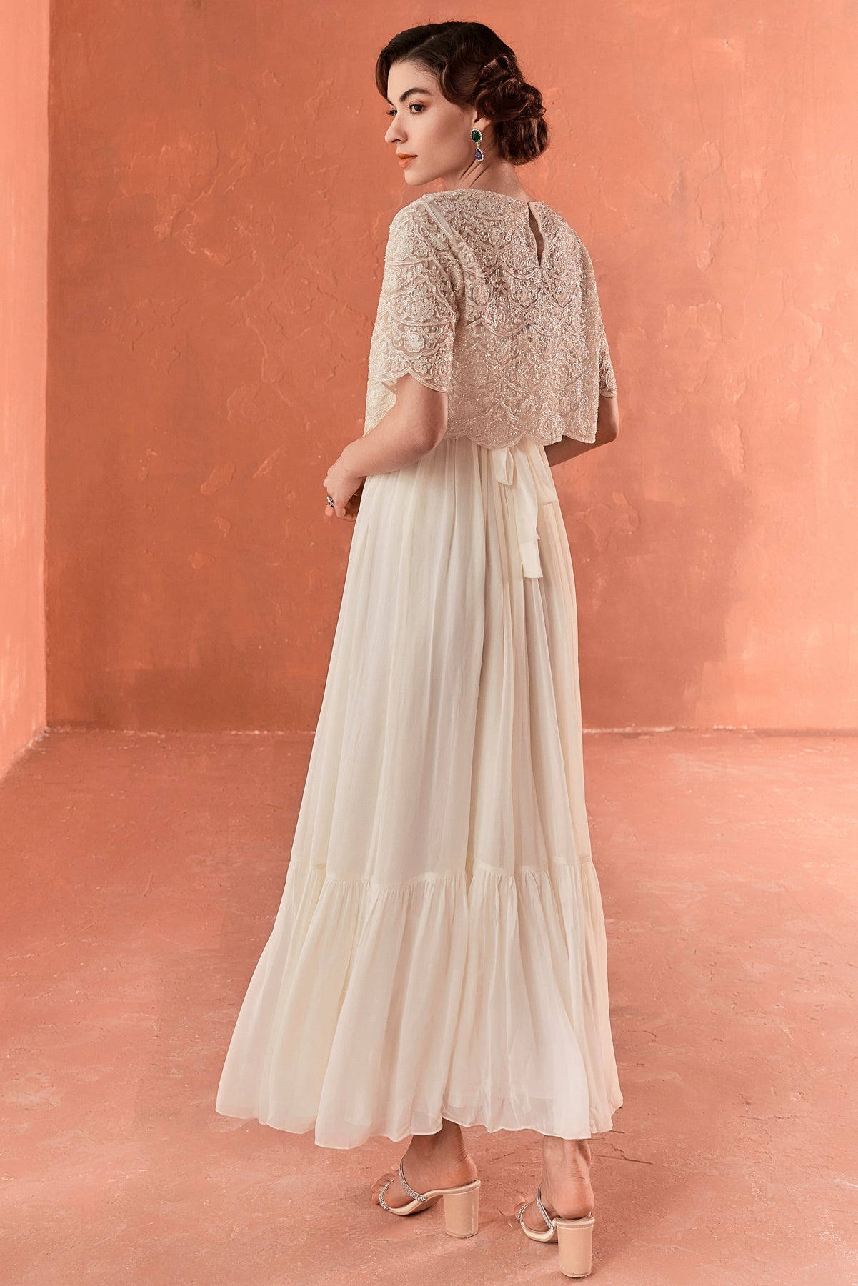 Step into pure elegance with our Chandelier Dress, paired with a delicately embroidered cover-up for a captivating ensemble.