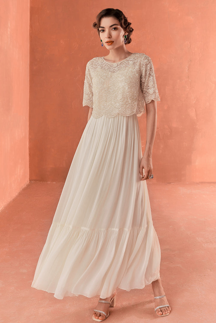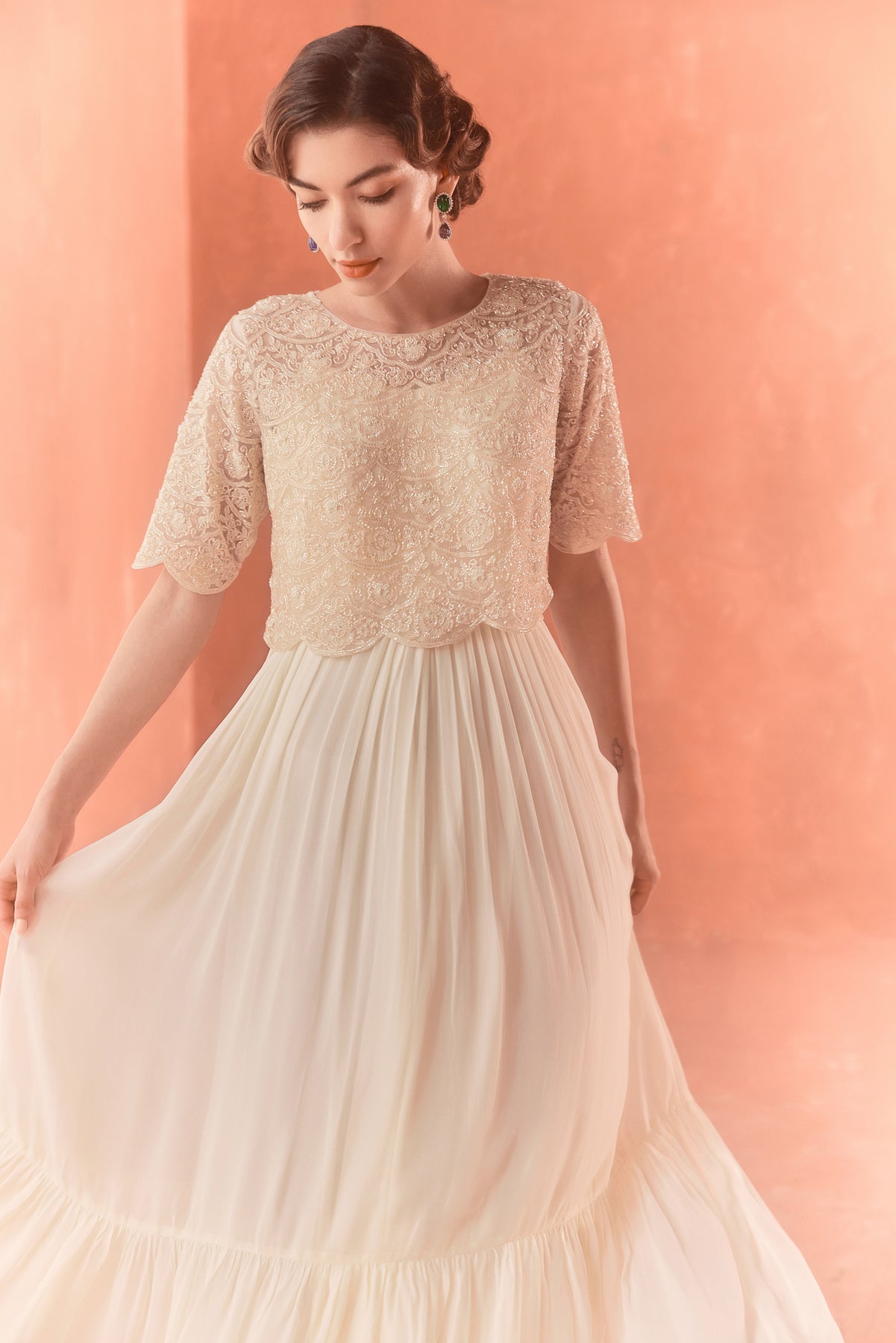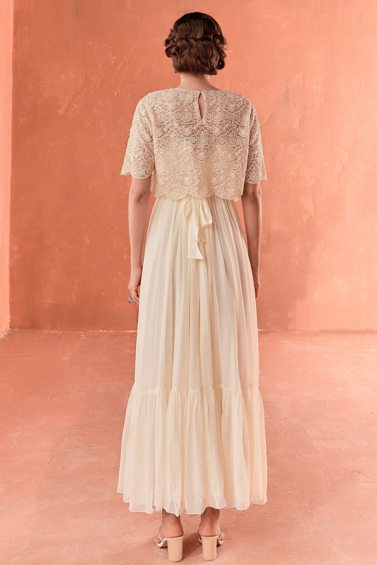 Step into pure elegance with our Chandelier Dress, paired with a delicately embroidered cover-up for a captivating ensemble.