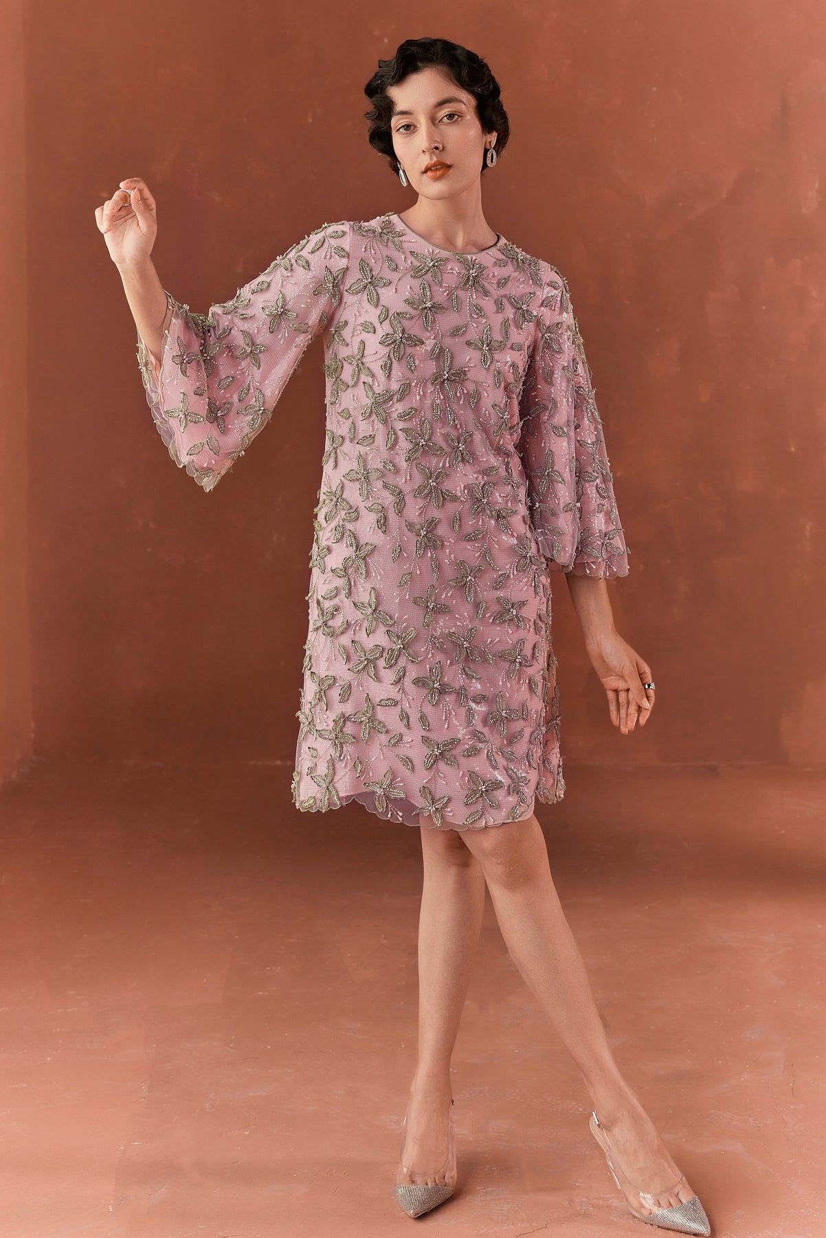 Elevate your style with our Pink Sequin Short Dress, blending modern fashion and exquisite embroidery.