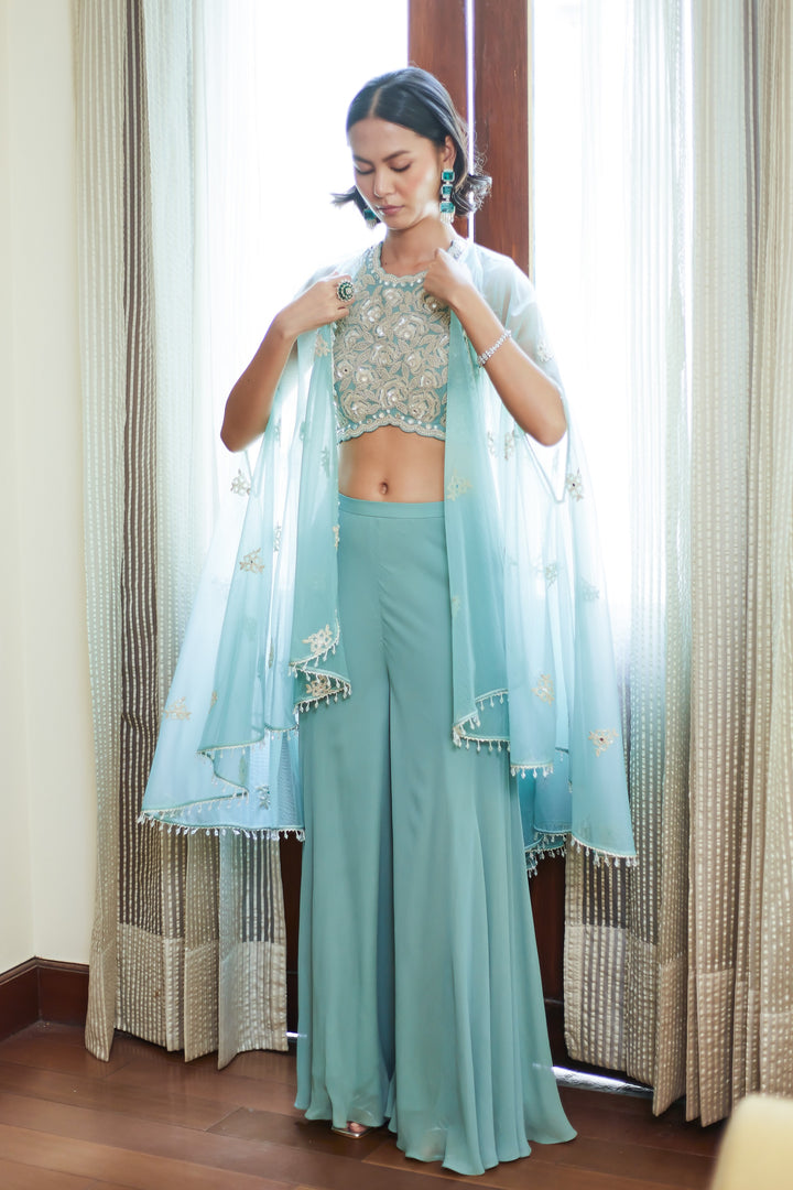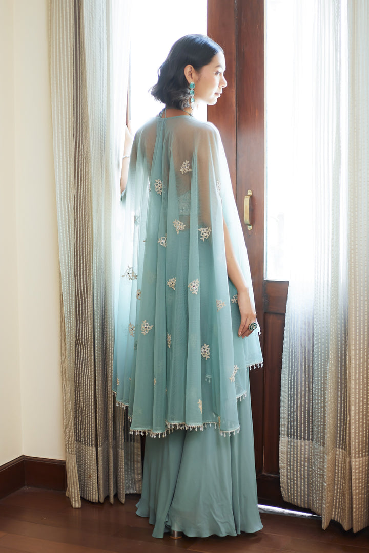 Introducing our Plummet Cape Set, a symbol of refined elegance. The embroidered cape cascades gracefully, adding a touch of sophistication.