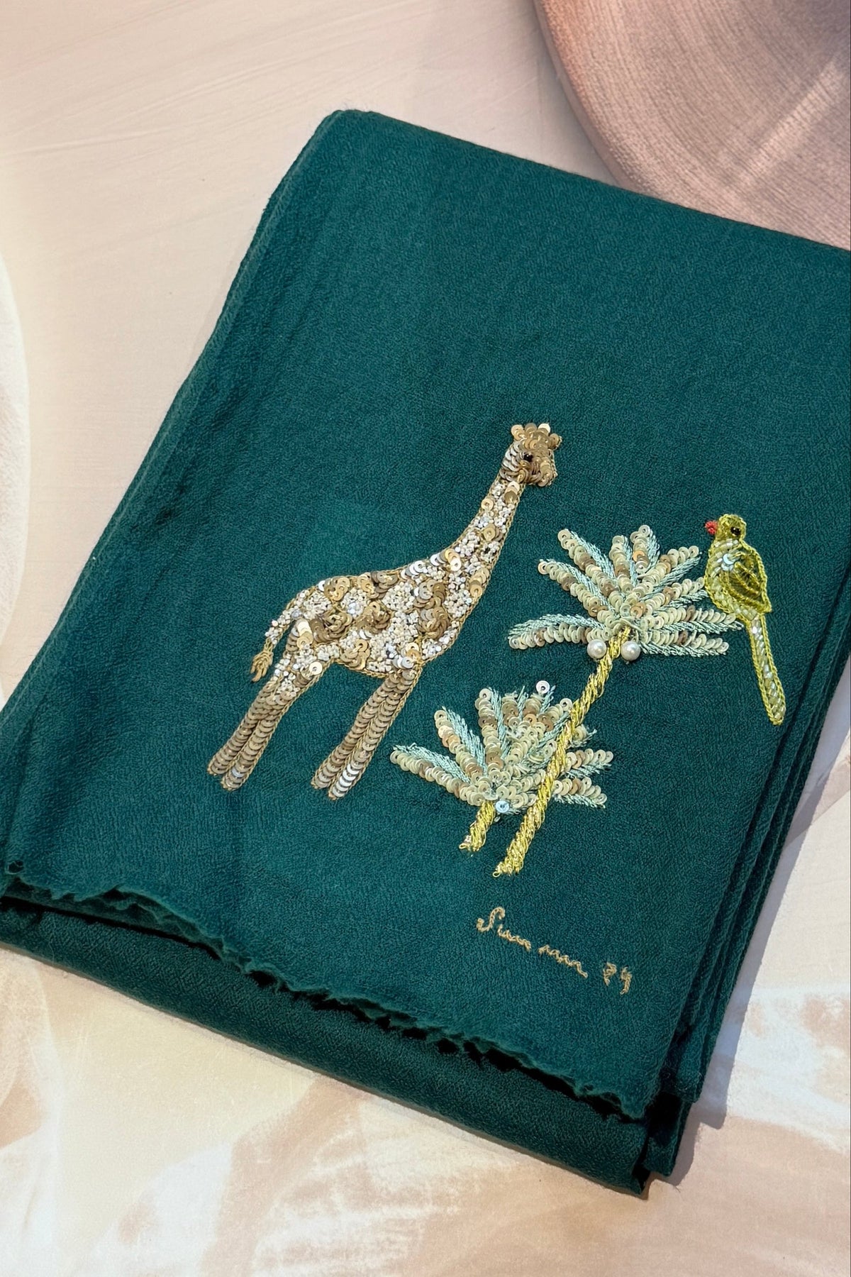 Elevate your style with our Giraffe Motif Sequin Stole, a perfect blend of luxury and whimsy. Crafted from premium wool fabric, this stole offers unparalleled softness and warmth, making it ideal for both chilly evenings and elegant occasions.