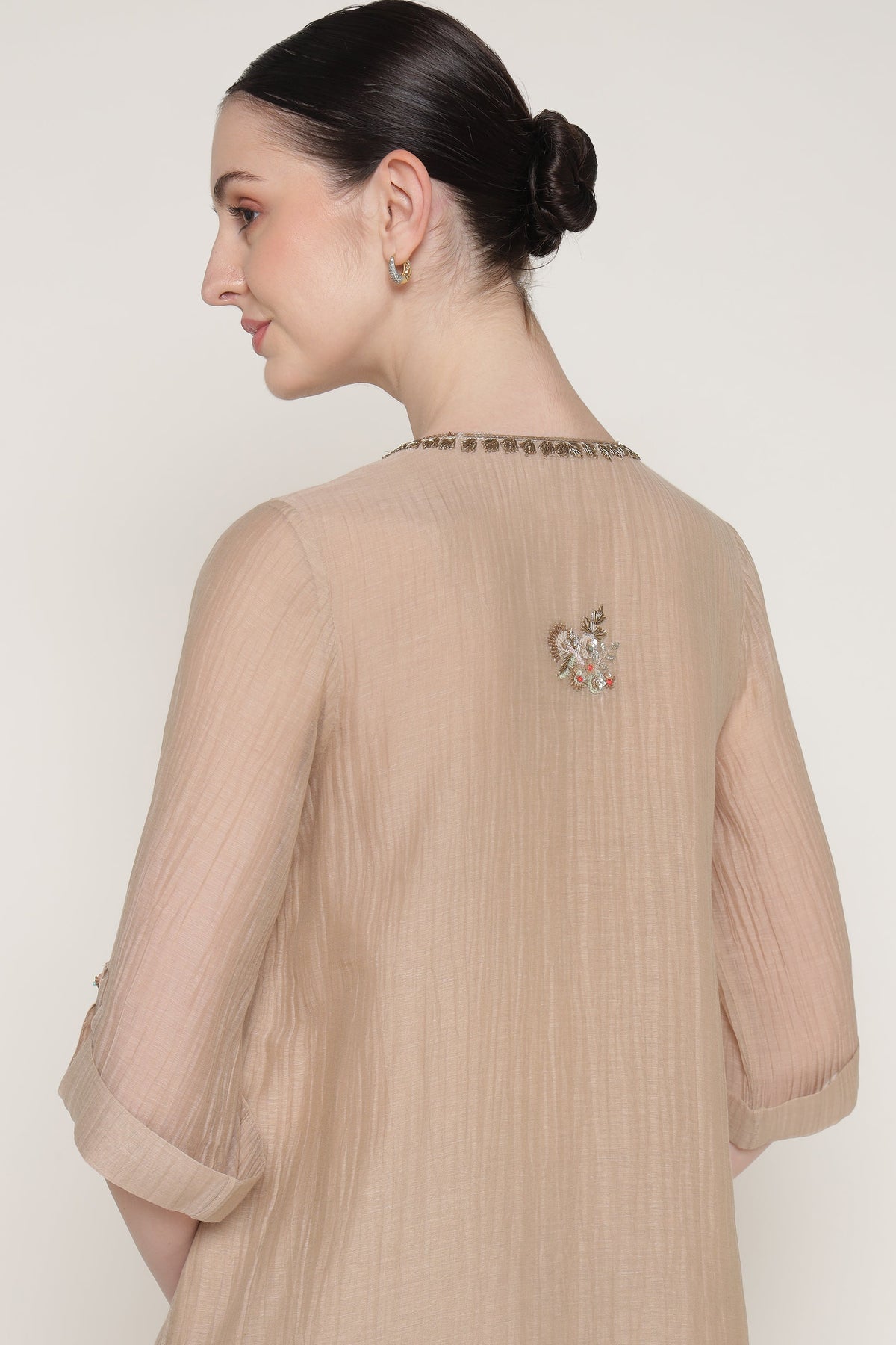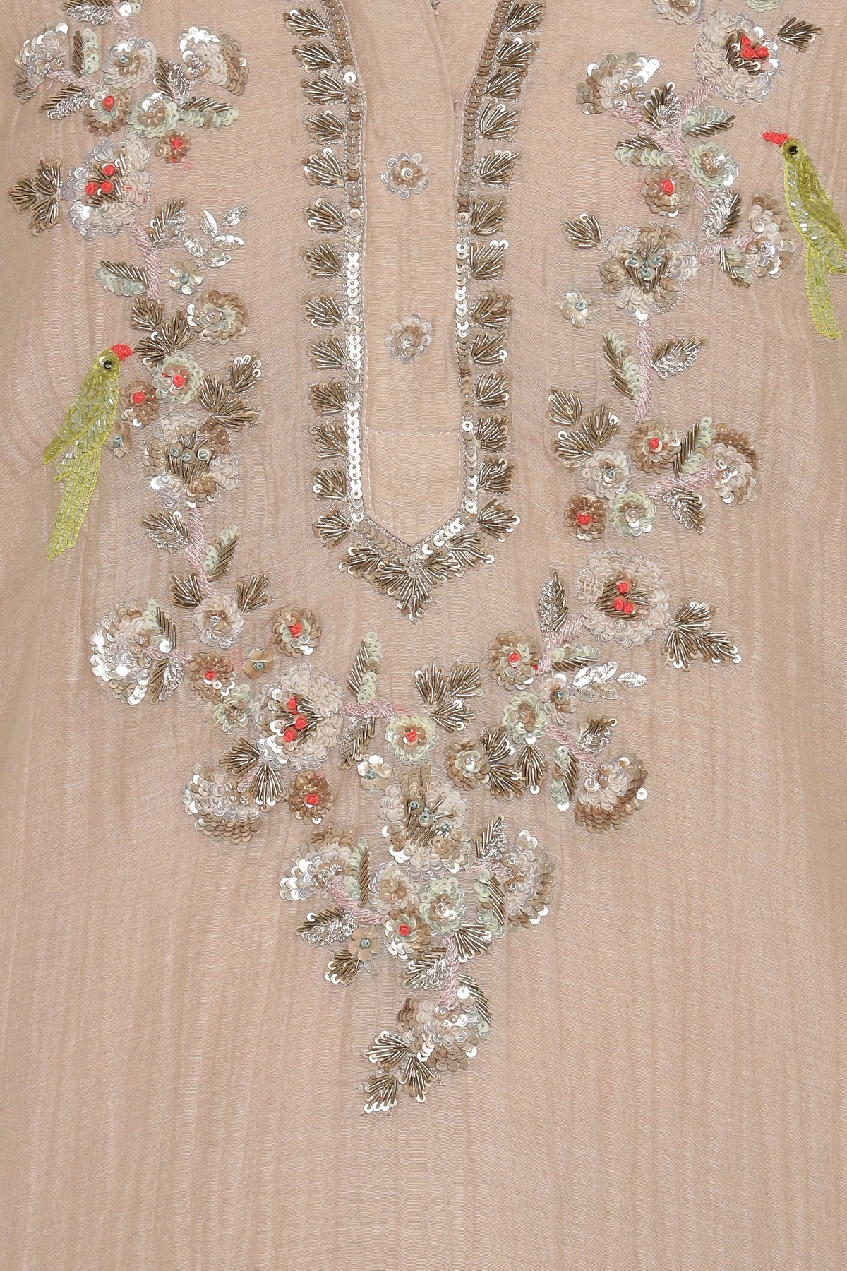 The Noor-e-Phool Co-ord is a festive set adorned with delicate Dabka and sequin embroidery. Its floral detailing adds a subtle shimmer, making it perfect for celebrations, brunches, and effortless occasion wear.