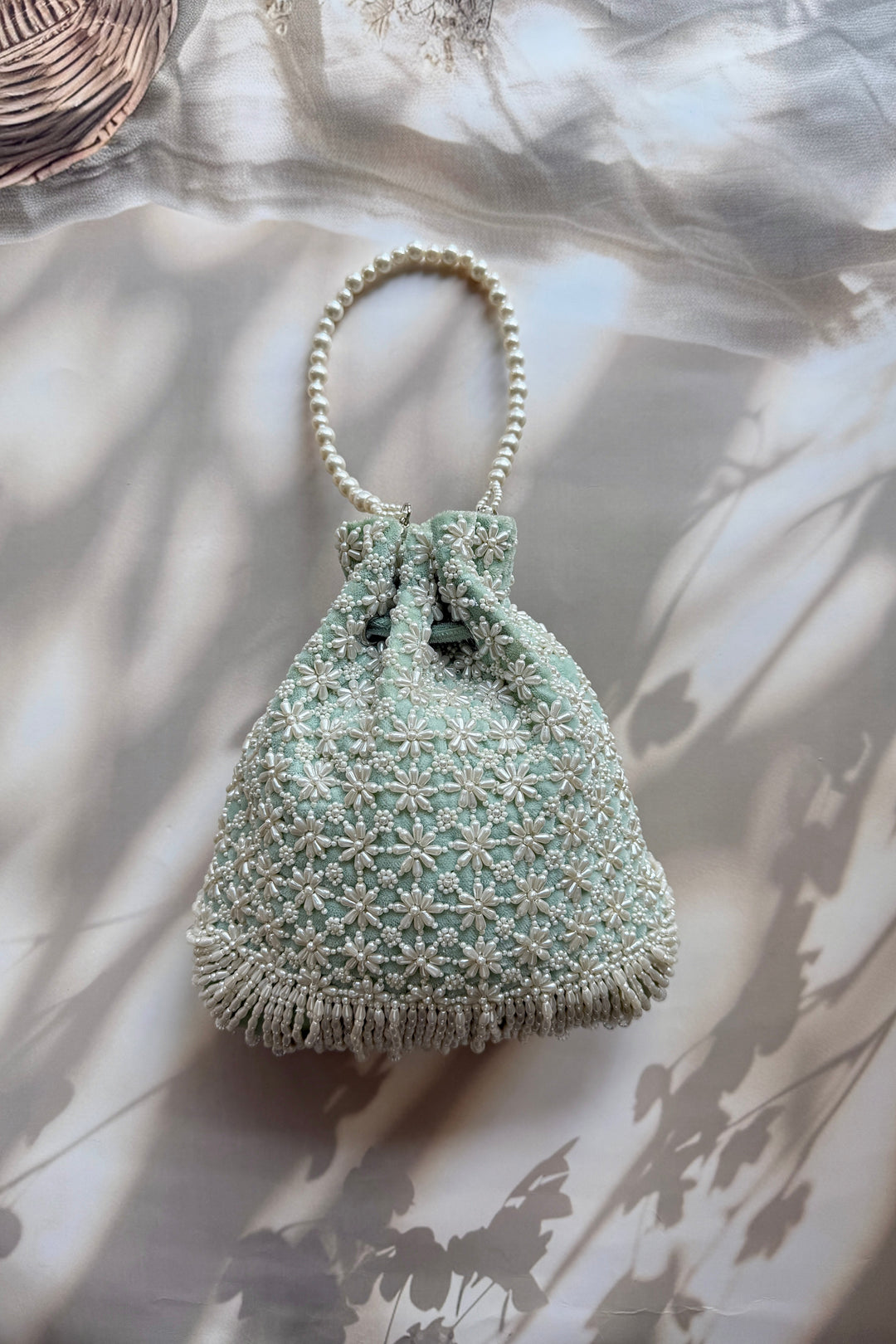 Add a touch of sophistication to your outfit with this pearl potli, beautifully adorned with lustrous pearls for a timeless, regal look. Perfect for weddings, festive occasions, and evening events, this stylish accessory complements both traditional and modern attire effortlessly.