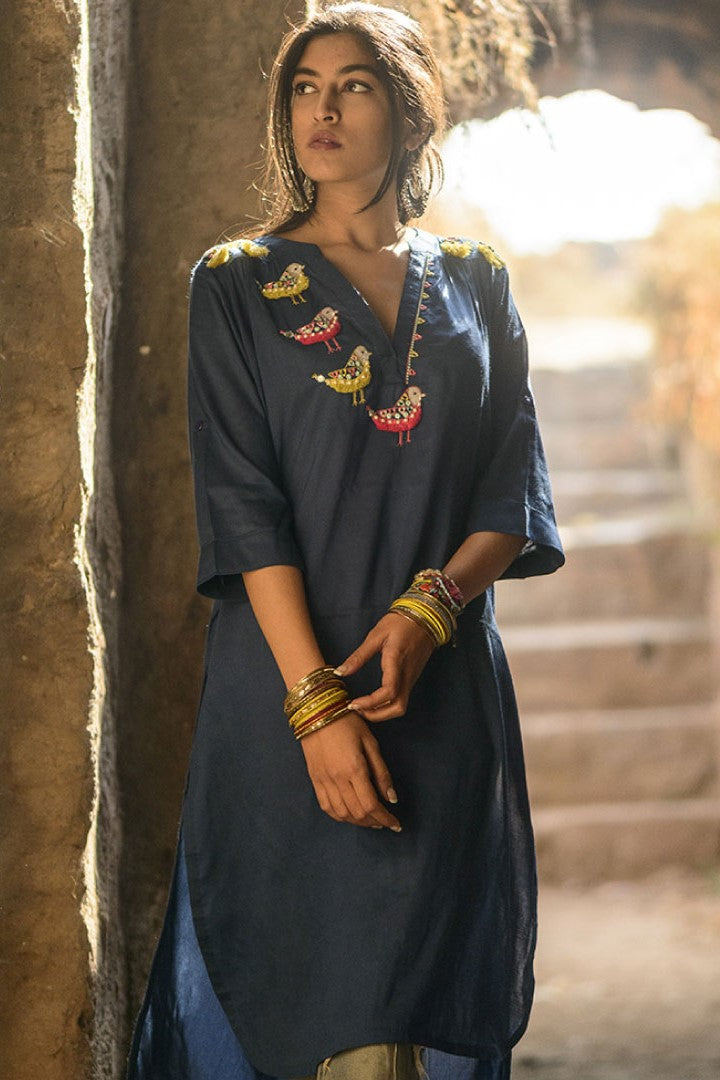 Navy Furry Bird Tunic