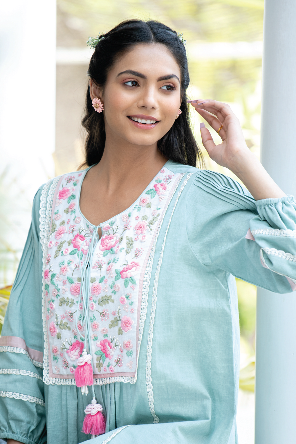 Ice Blue Lace Placket Tunic