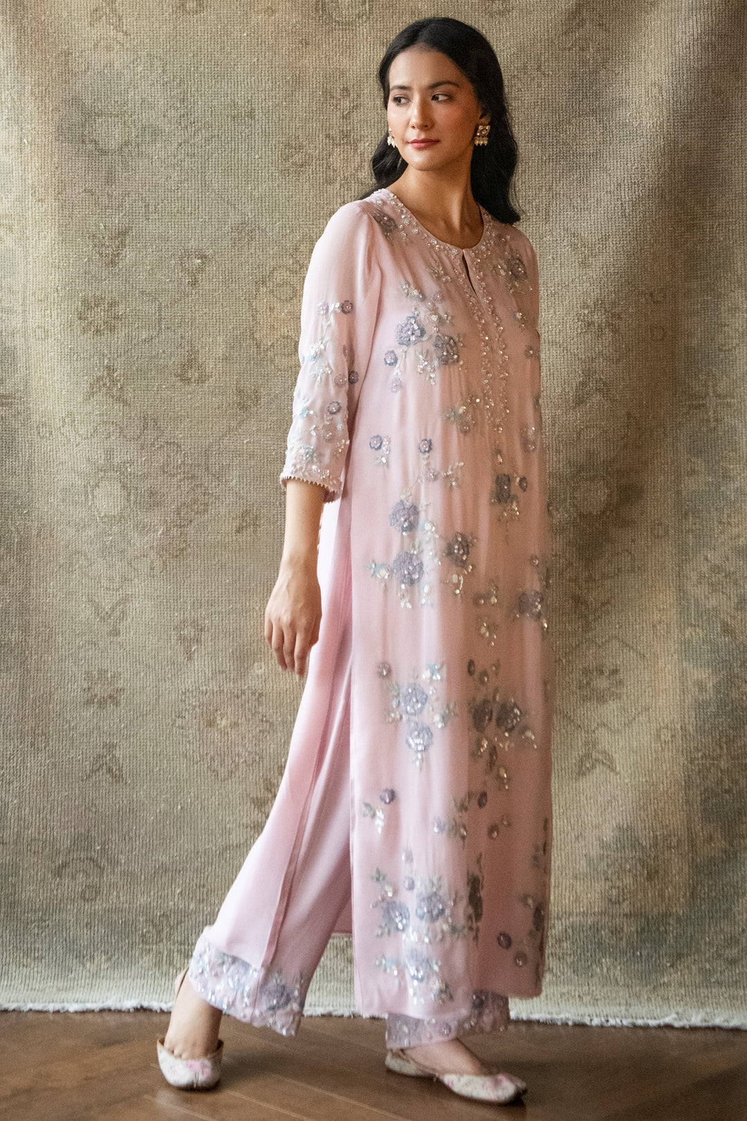 Pink Winter Garden Straight Kurta Set