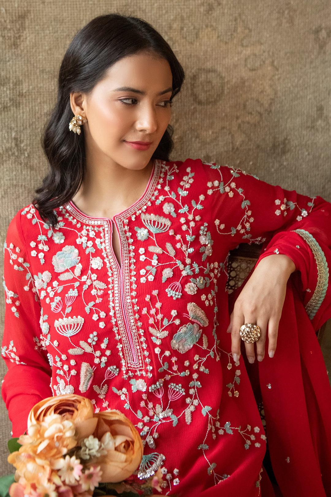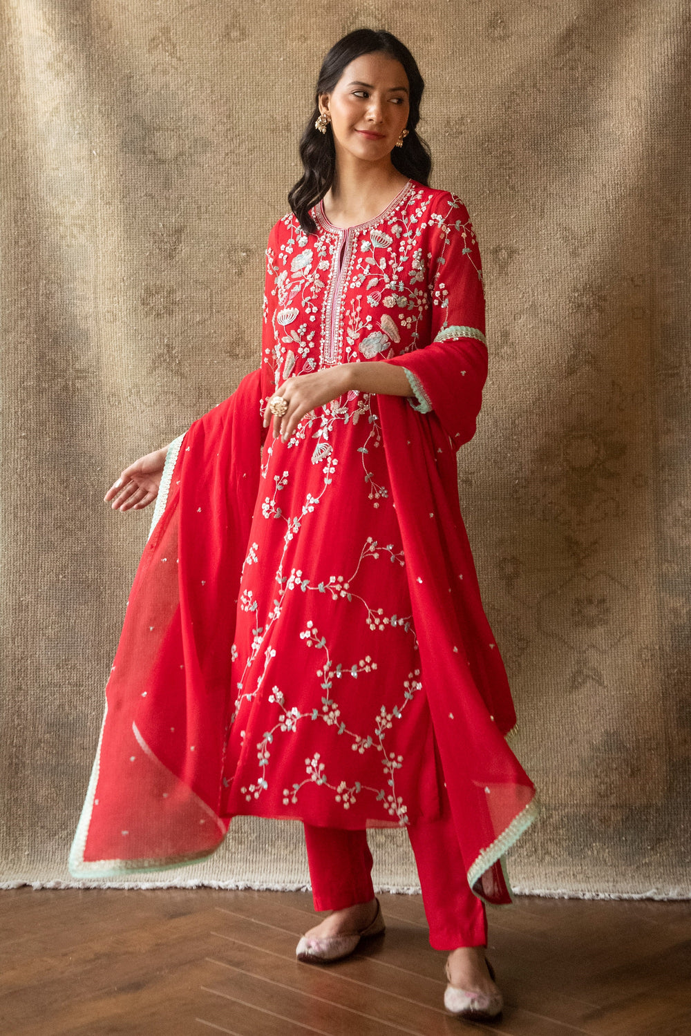 Red Persian Straight Kurta Set