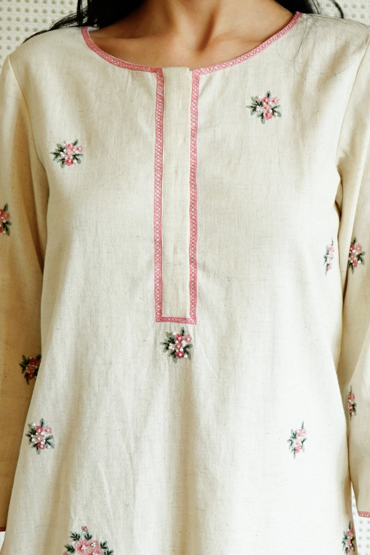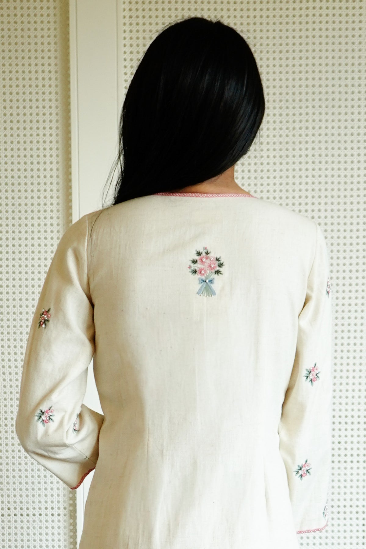 An Aari Bouquet Coord Set adorned with intricate aari embroidery, celebrating fine craftsmanship and timeless charm. Designed in a soft, graceful silhouette, the ensemble blends delicate detailing with effortless comfort.