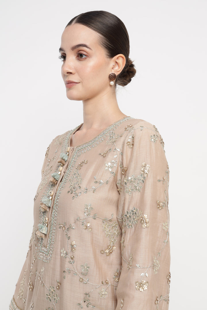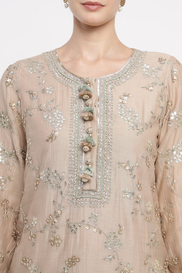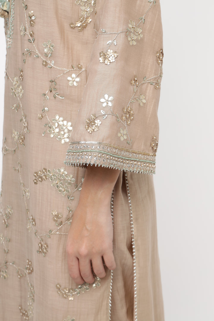 Beige Vrinda Gota Jaal Kurta Set
