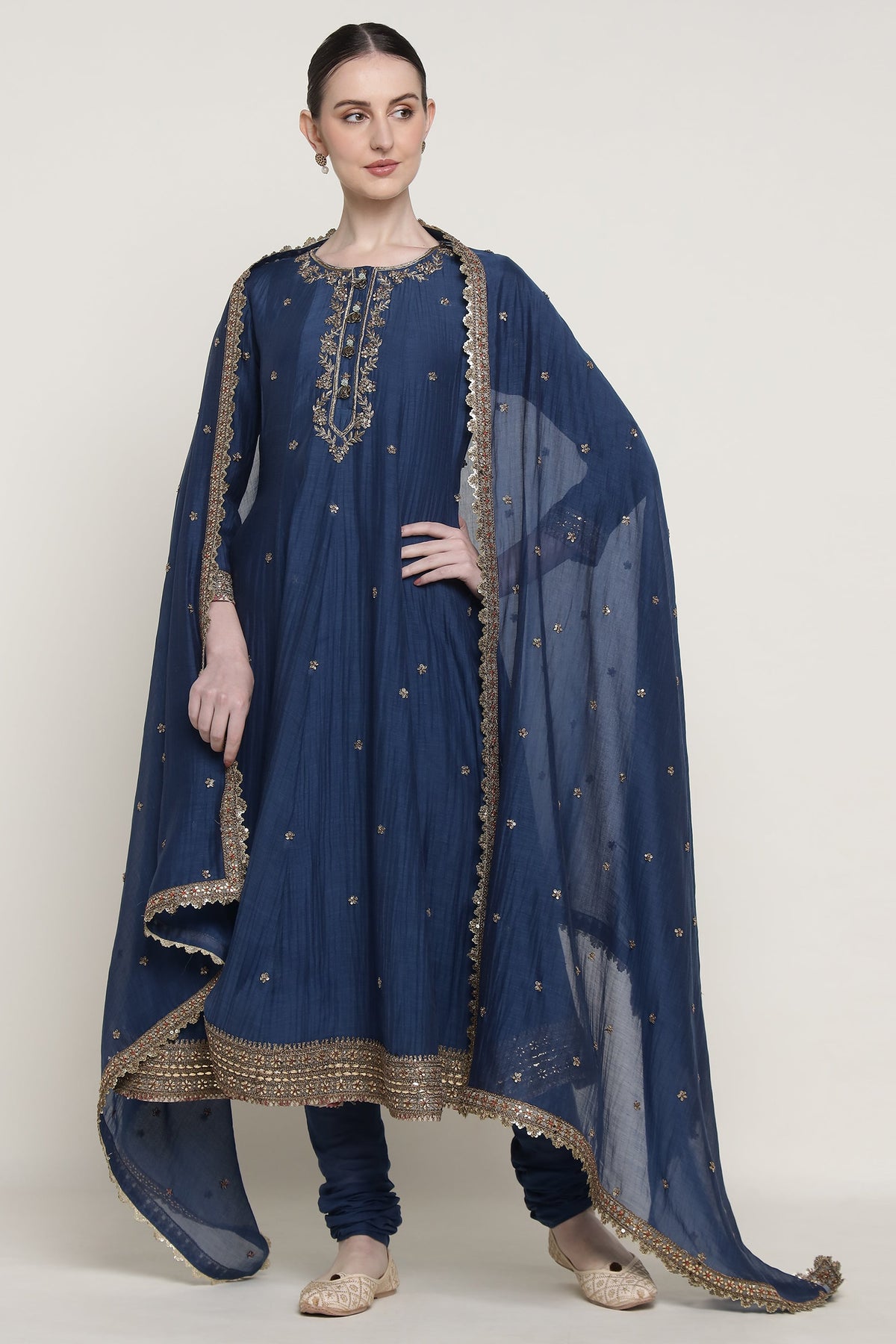 The Gul Sadaf Anarkali is fully hand-embroidered with delicate floral motifs and ornate borders. Flowing and graceful, it’s paired with a matching dupatta and designed for wedding celebrations and festive evenings that call for timeless elegance