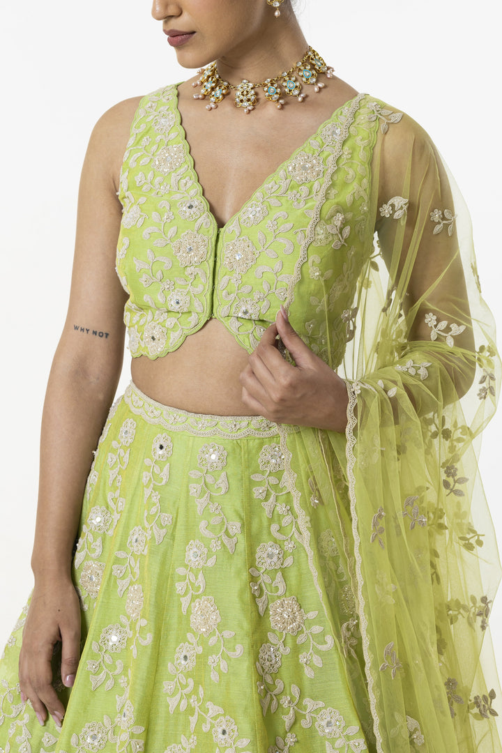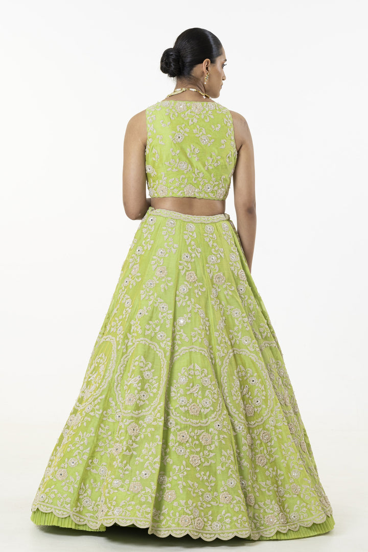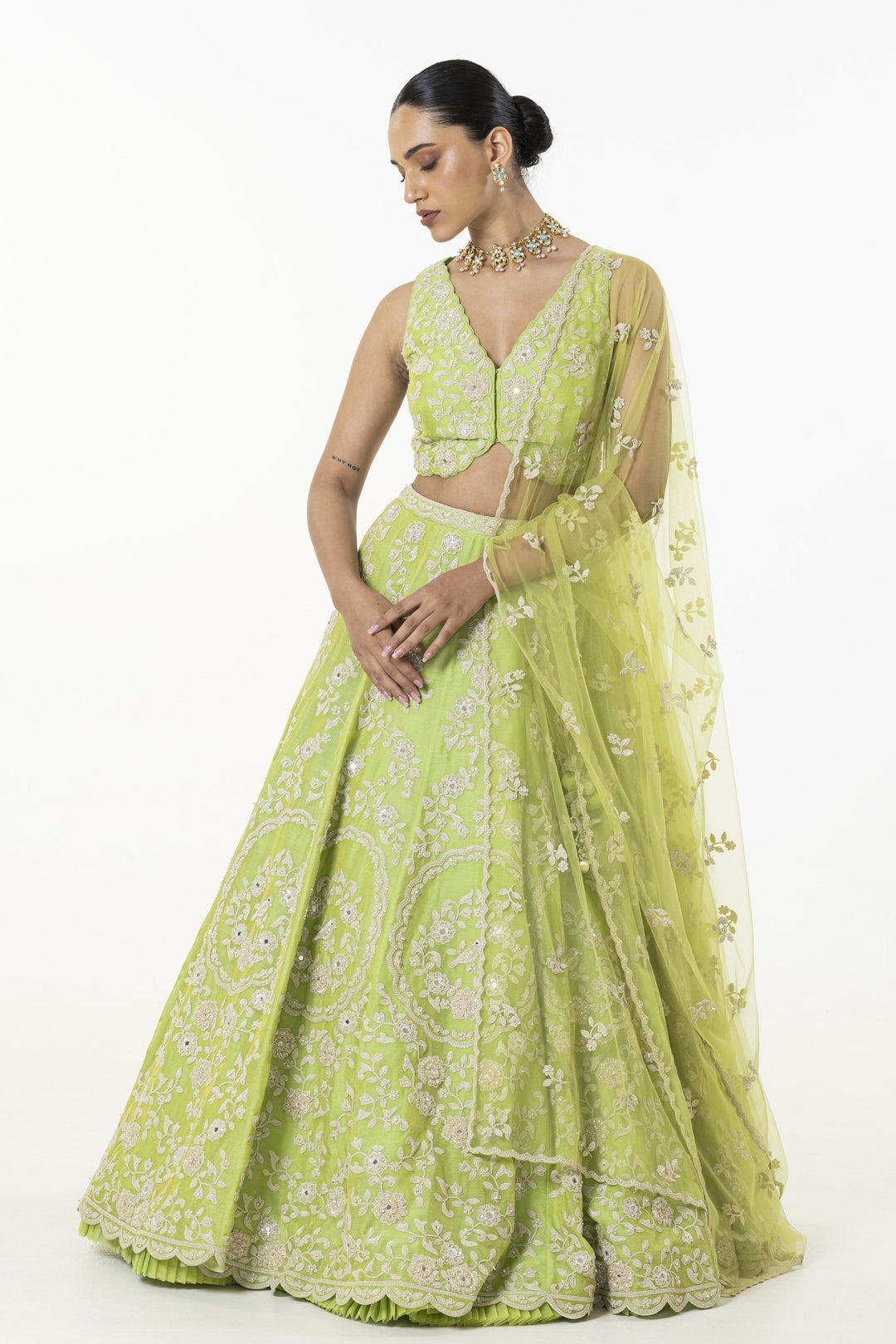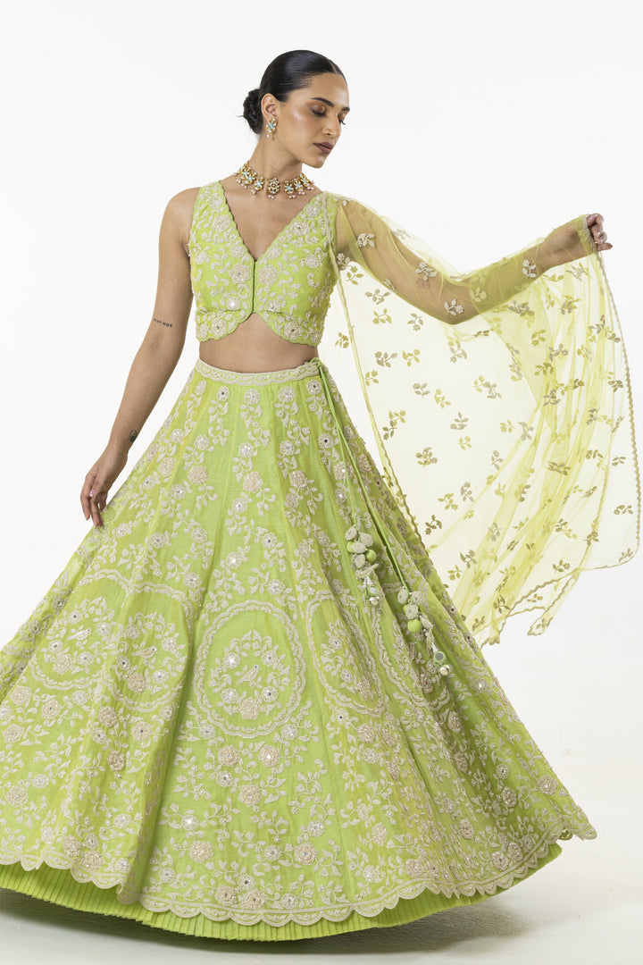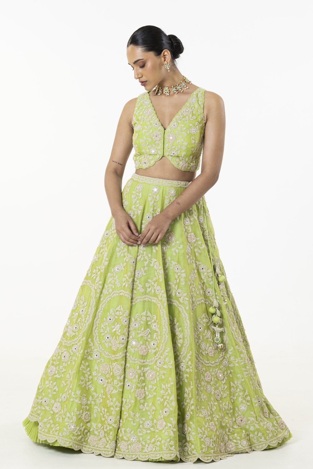 Tissue Lehenga with beautiful embroidery perfect for mehendi