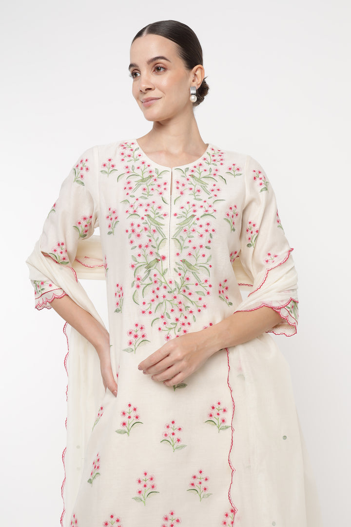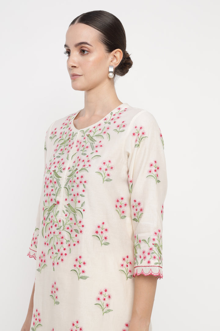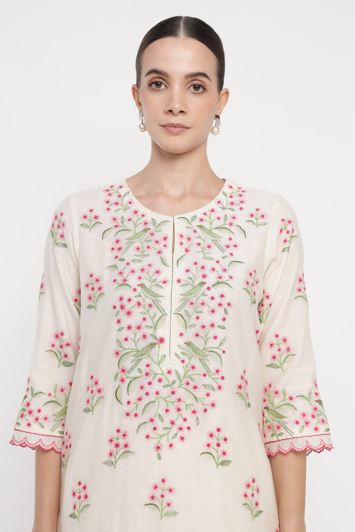 Ivory Blush Parrot Kurta Set