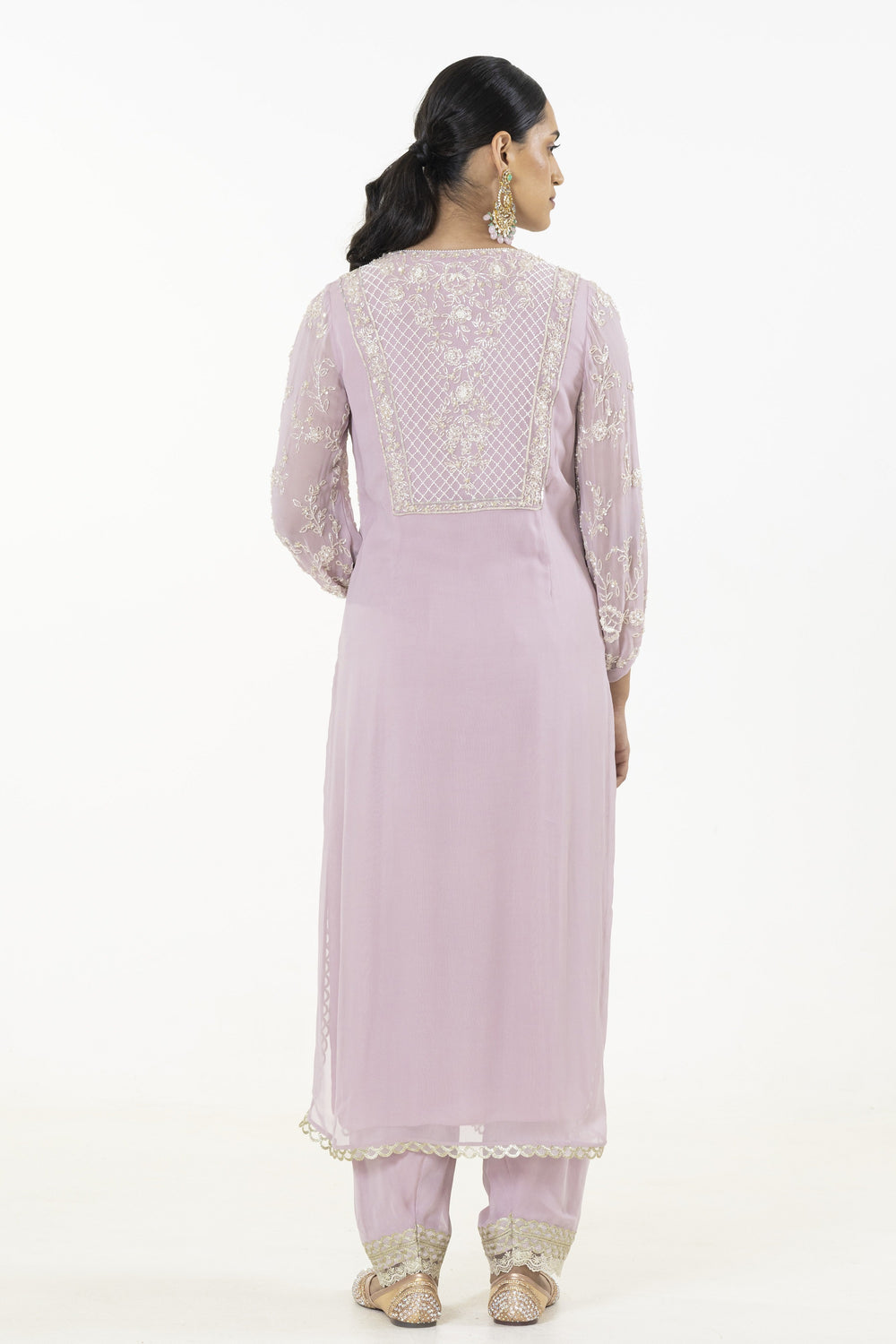 Elegant hand-embroidered pastel kurta set for festivities and functions