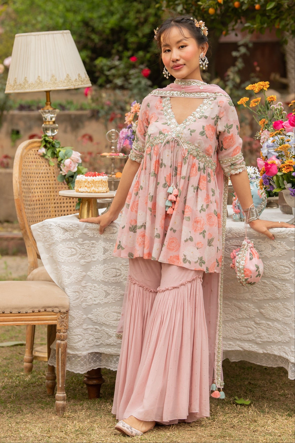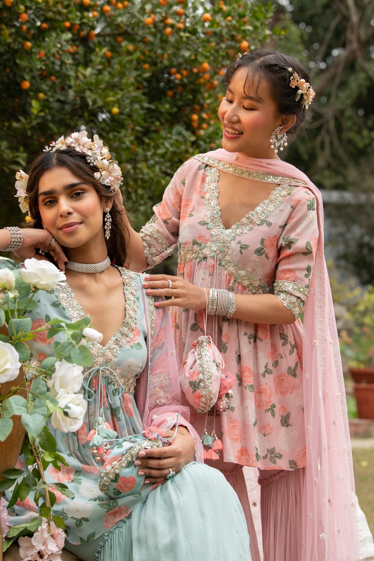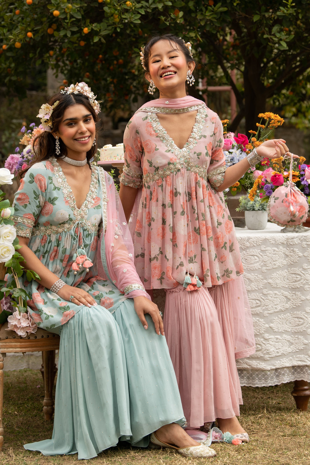 Beautiful floral garara set for wedding festivities for bridesmaids