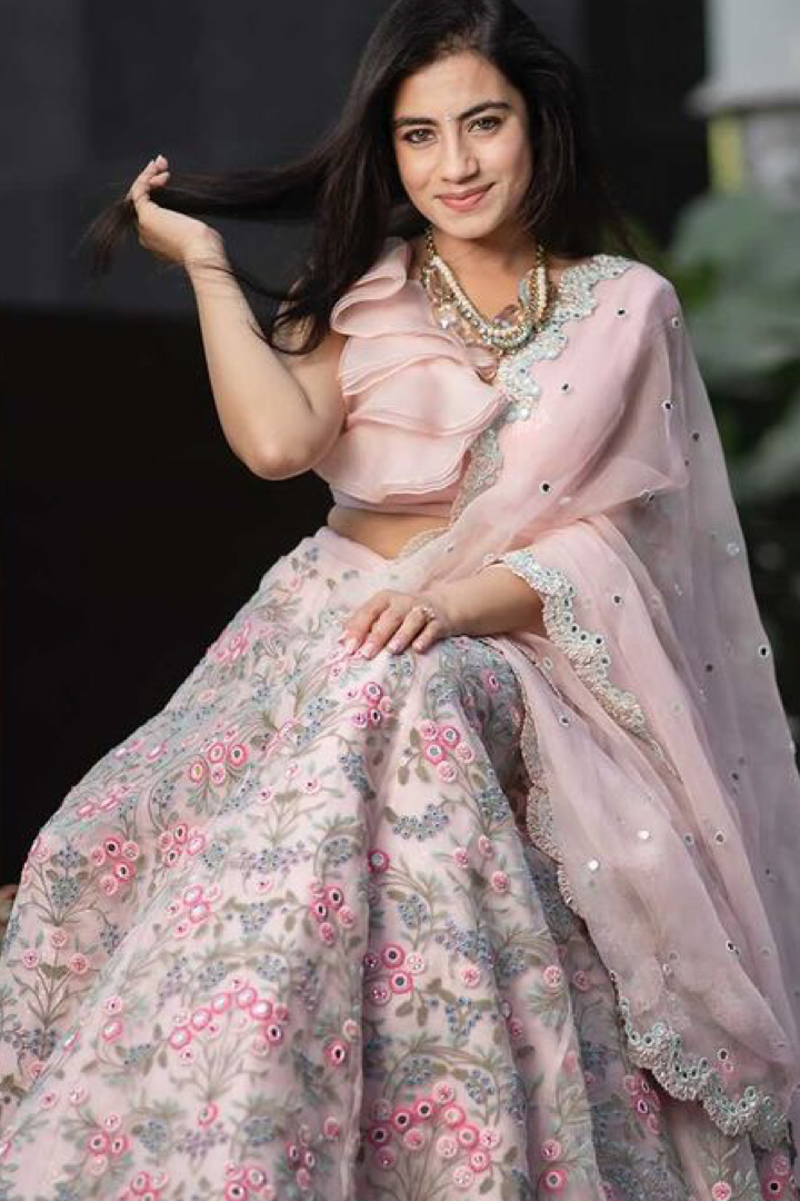 Pink Organza Lehenga Set With Intricate Pearl And Thread Work.