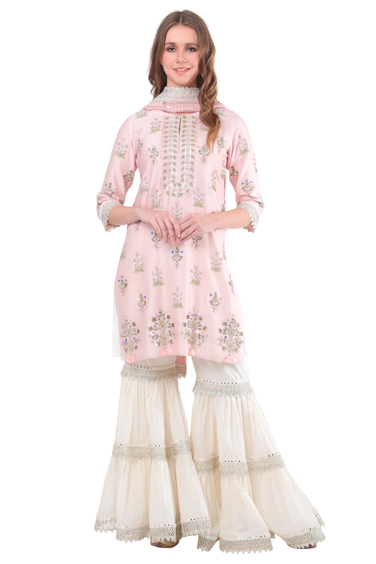 Pair this Pink Mirror Flower Garara Set with statement accessories for a glamorous look that's sure to turn heads. Embrace the beauty of tradition with a contemporary flair and make a stylish statement wherever you go.